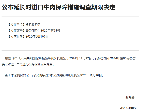 牛肉保障措施调查延长3个月,商务部给出解释