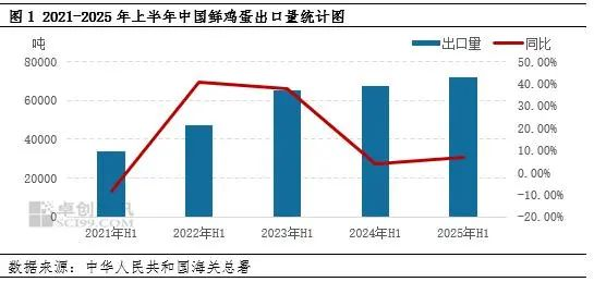 2025年中国鲜鸡蛋出口创五年新高,上半年出口量和贸易伙伴数量实现“双增长”